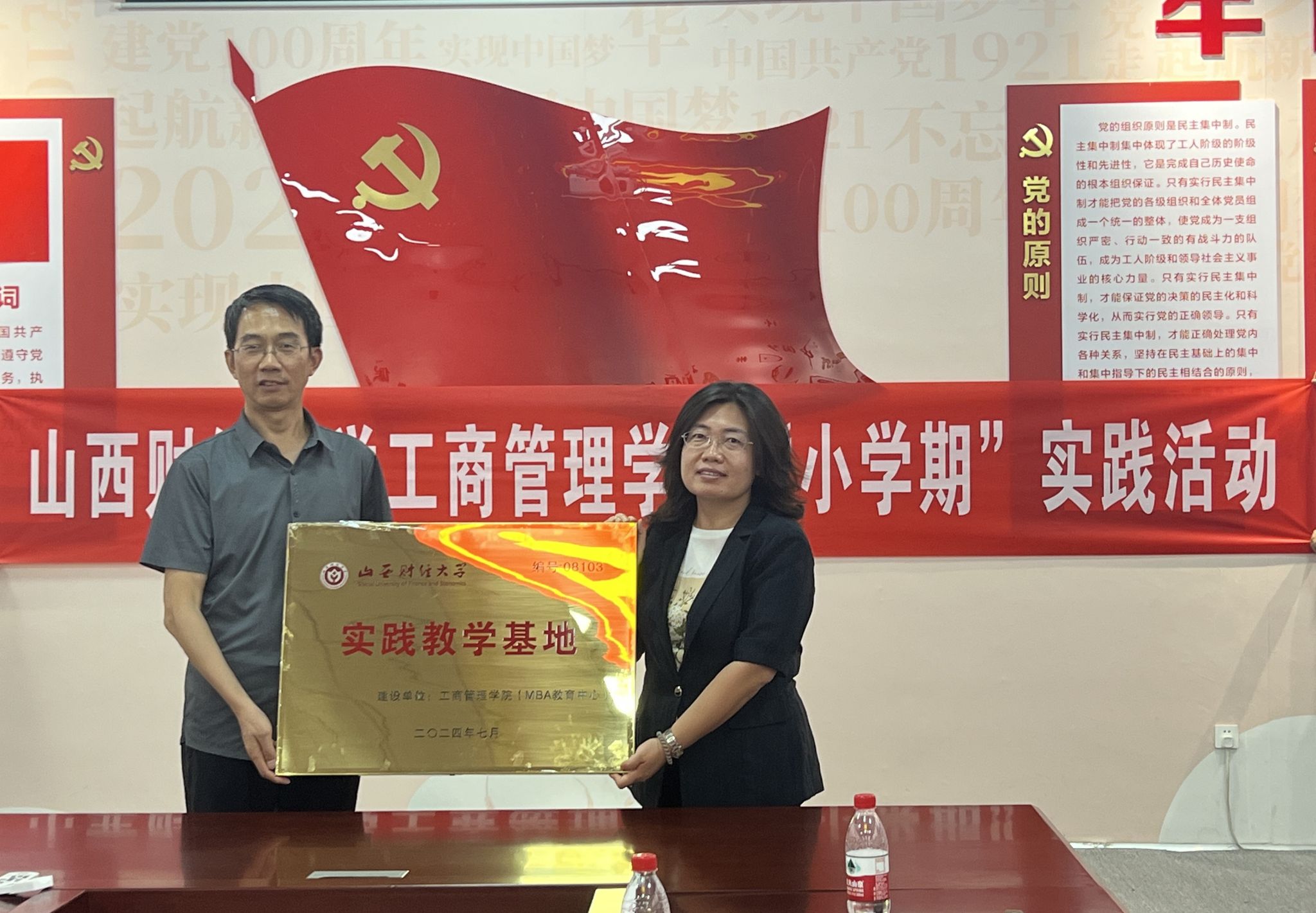 实践教学基地”牌匾,并为公司人力资源管理部门负责人王晓颁发“校外实践导师”聘书。