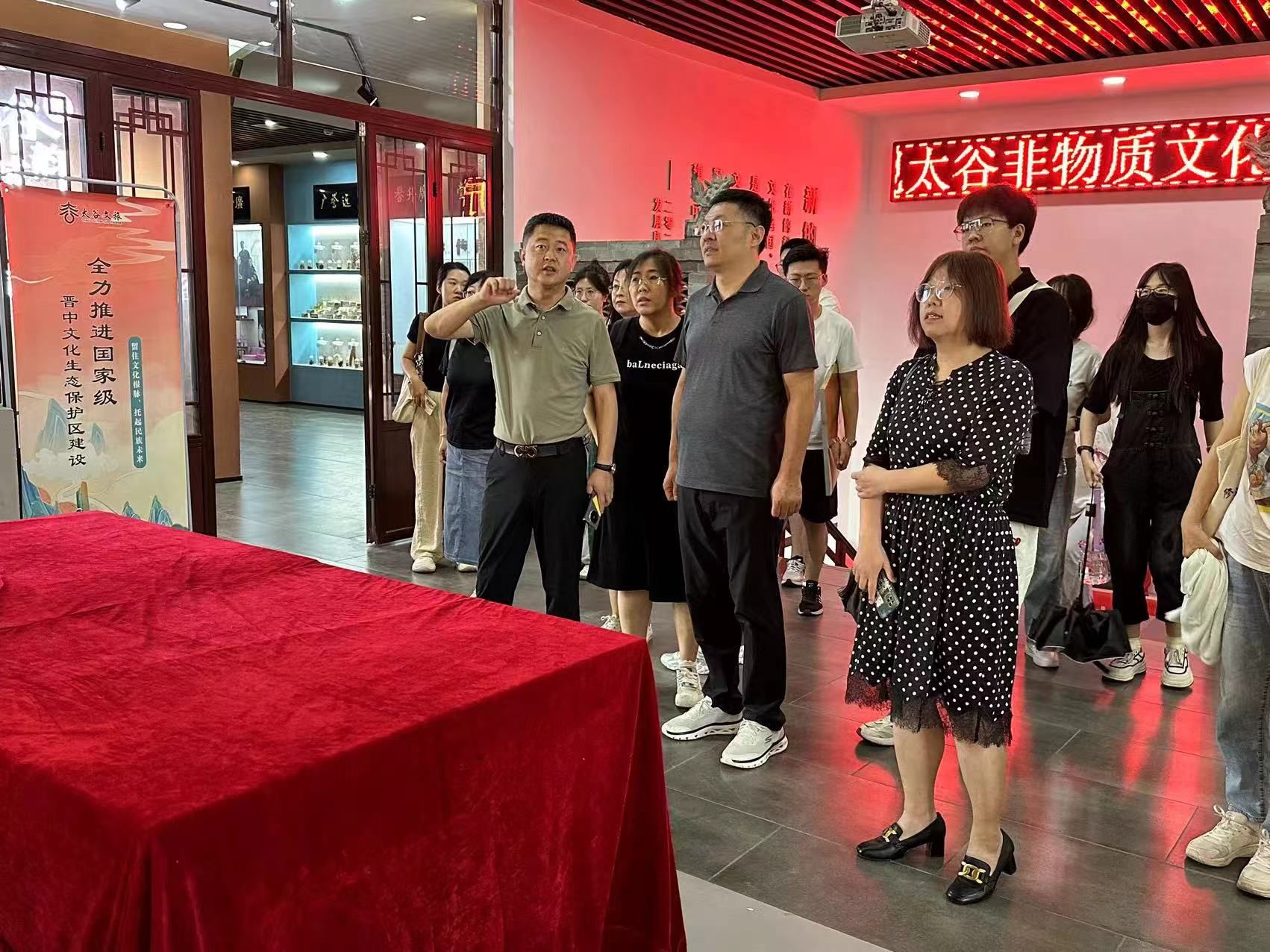 师生们首先参观了公司倾力打造的太谷非物质文化遗产博物馆,博物馆讲解员向来访师生介绍了太谷县的传统医药、民间文学、歌舞乐艺等领域的非物质文化遗产。该博物馆以医心遗艺、太谷味道、乡风乡韵、古城记忆为主题,呈现独具太谷特色的历史记忆,不仅成为了公众了解和接近太谷非物质文化遗产的重要窗口,也是对该地区文化传承与保护工作的一种生动体现。