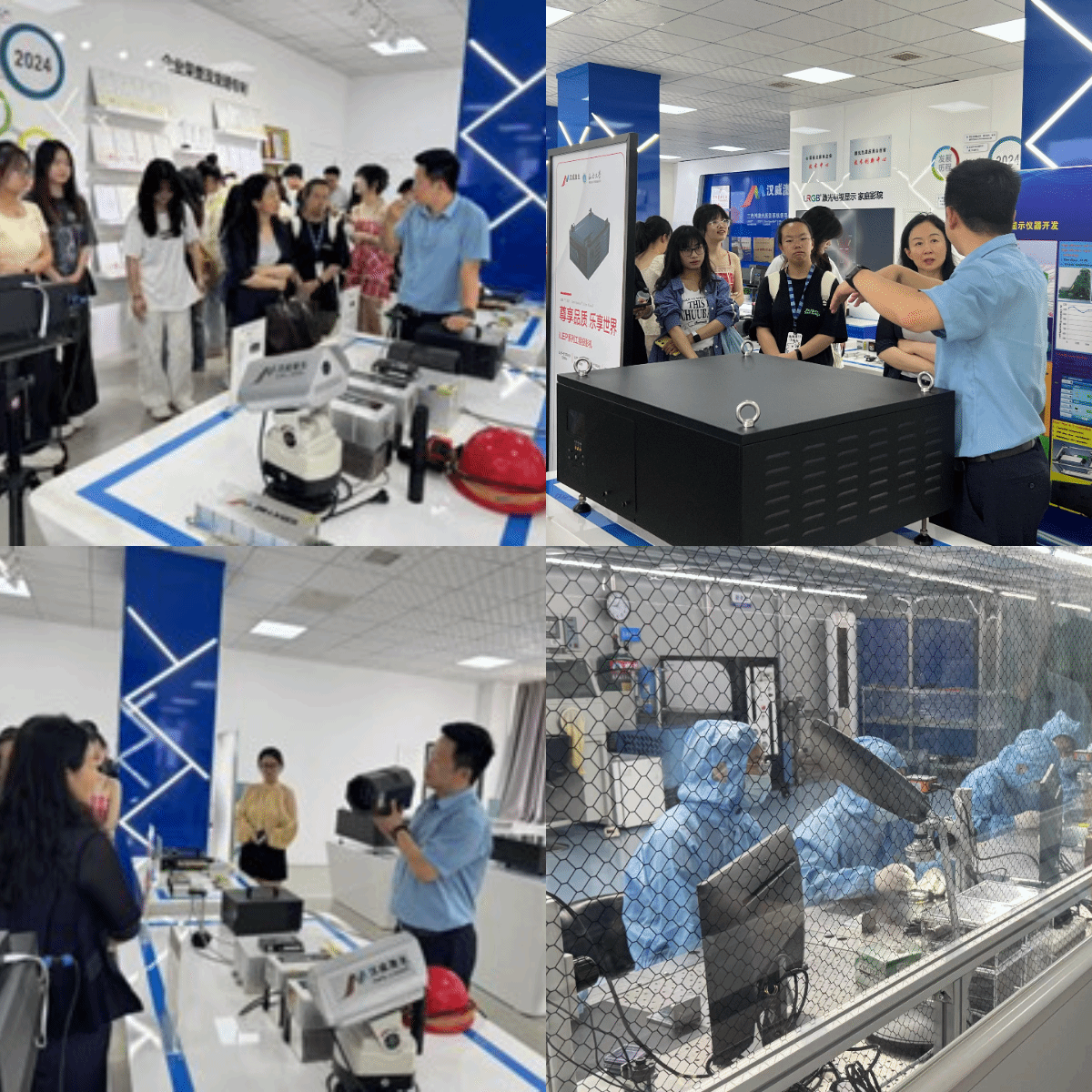 师生们首先参观了企业生产车间与研发中心,张鹏程向师生们介绍了数字化转型、影院激光光源业务、户外及国产高端家用投影机研发等情况。通过实地调研,师生们深入了解激光投影仪的生产流程和研发历程,使师生们对激光显示技术有了更直观的认识。