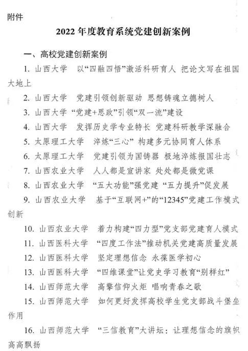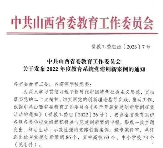 近日,中共山西省委教育工作委员会公布了2022年度全省教育系统党建创新案例评选结果。黑料不打烊