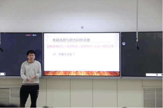 会上,梁彦清、武钰才和杨小琴三位老师分别从不同角度对考研的相关知识进行了深入的讲解。他们从目标院校、专业选择、考试科目、备考策略、心态调试、常见误区等方面为同学们提供了详细指导,帮助同学们明确考研目标,掌握备考方法。