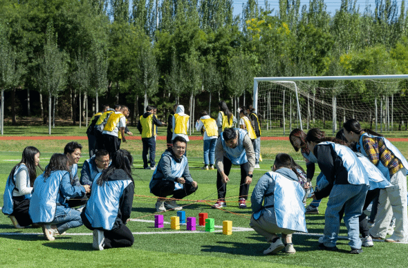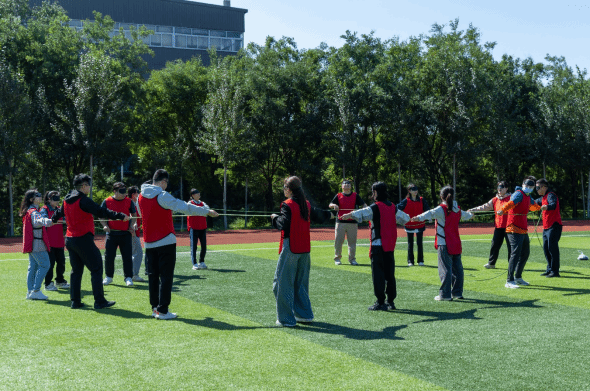 教练团打破班级限制,为新生提供更广阔的交流机会。所有新生随机分组,自主完成队名拟定、队长选举,并以分组比赛的形式开展“同心击鼓”、“合力建塔”、“不倒森林”、“盲人方阵”、“雷池取水”、“神笔马良”6个素质拓展项目。
