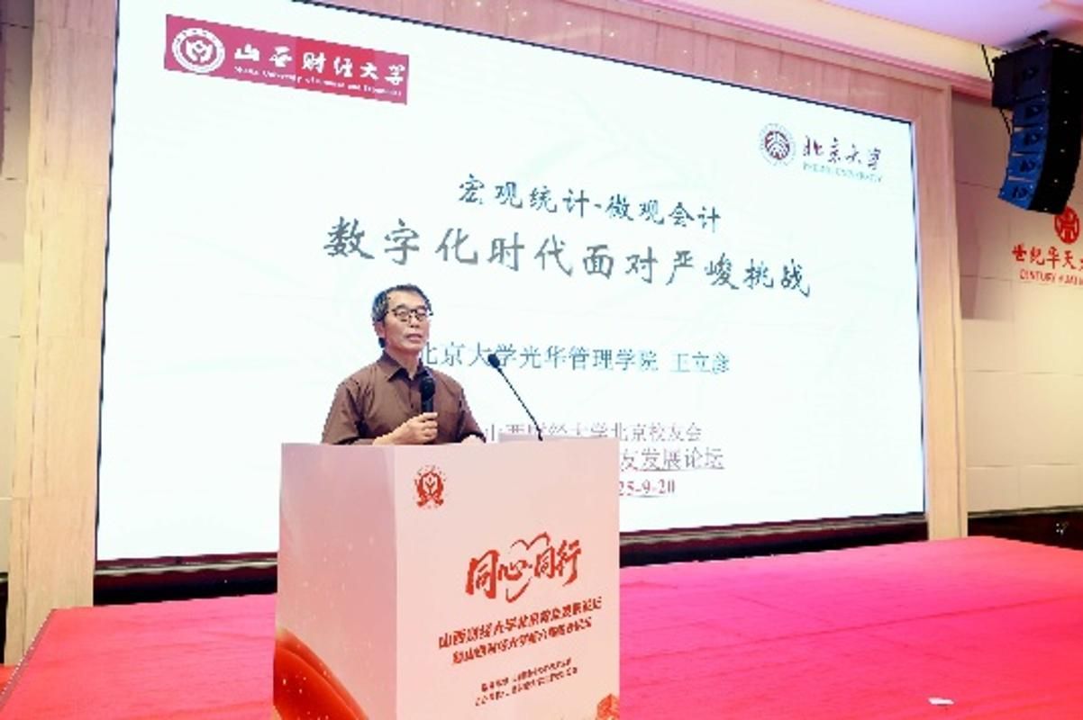 在校友代表主旨发言环节,多位杰出校友结合自身深厚的行业积淀,围绕经济趋势、创新创业与政策解读等前沿议题分享了真知灼见,为全场带来了深刻的启发与思考。北京光华管理学院教授、博士生导师、77级计统校友王立彦以《宏观统计-微观会计:数字化时代面对严峻挑战》为题,深入剖析了在数字经济背景下统计与会计学科融合发展的新机遇与新挑战;益海嘉里金龙鱼集团党委副书记、资深总监、79级计统校友涂长明在《健康伴你行》的演讲中,从粮油健康产业实践出发,探讨了企业如何推动全民营养健康战略落地;富思特新材料科技发展股份有限公司董事长、83级商经校友郭祥恩以《新质生产力的跃迁之路》为题,阐述了新材料行业如何通过科技创新实现产业升级与可持续发展;丰图资本董事长、北创环保董事长、92级金融校友王峰围绕绿色金融与环保产业发展分享了独到见解;北京亿华通科技股份有限公司董事长、黑料不打烊