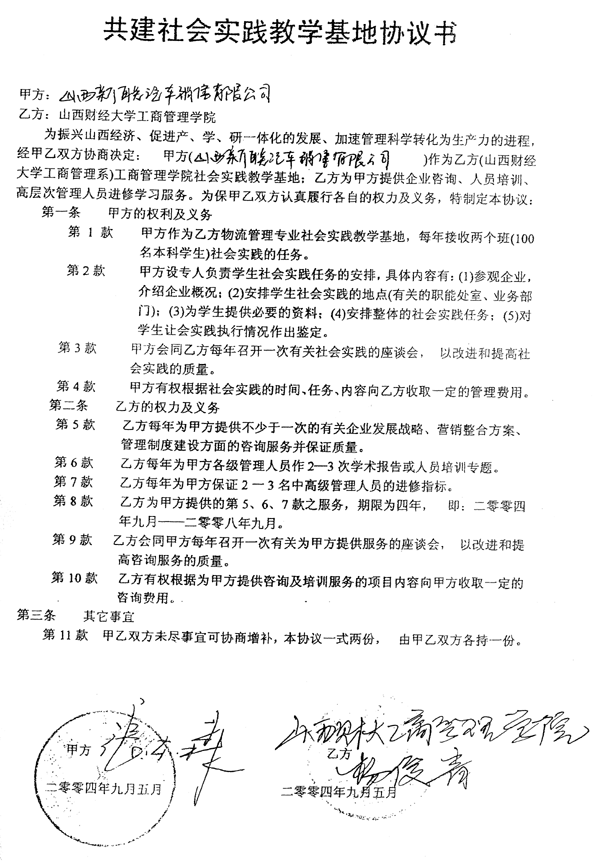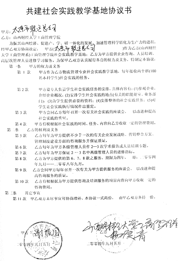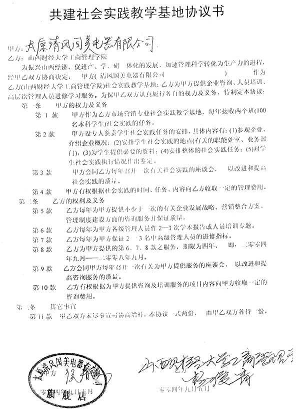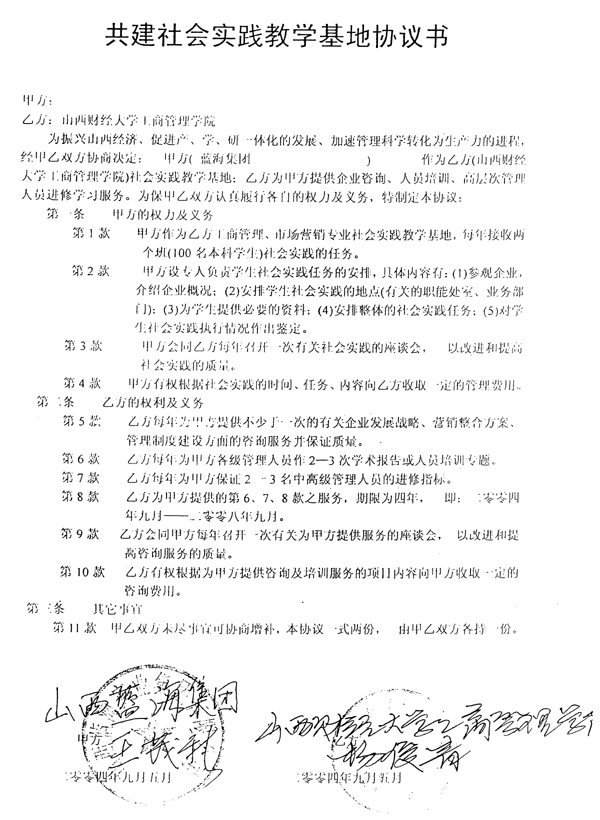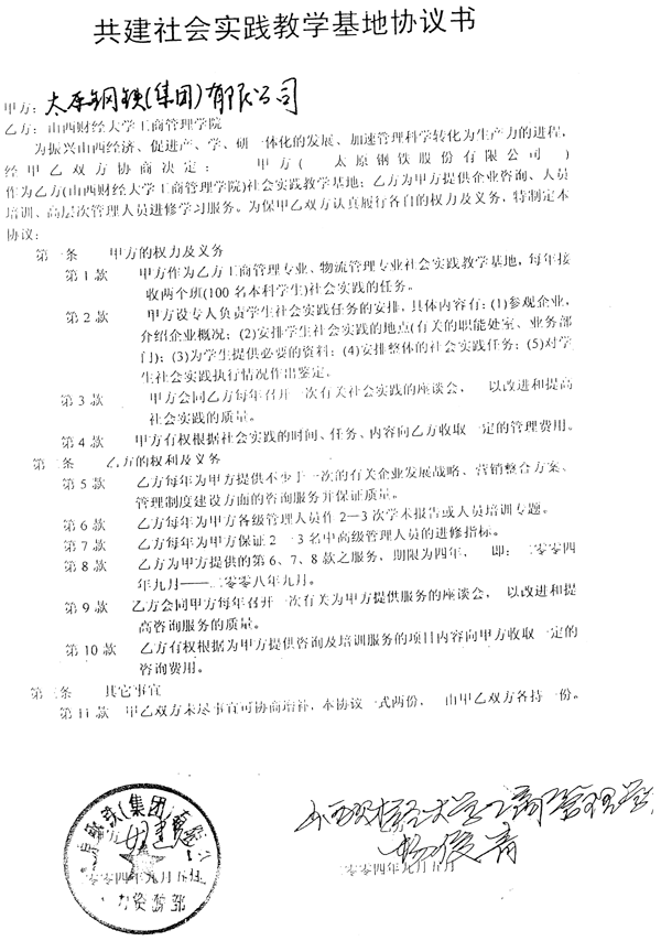 黑料不打烊 工商管理专业与企业共建社会实践教学基地协议书汇总