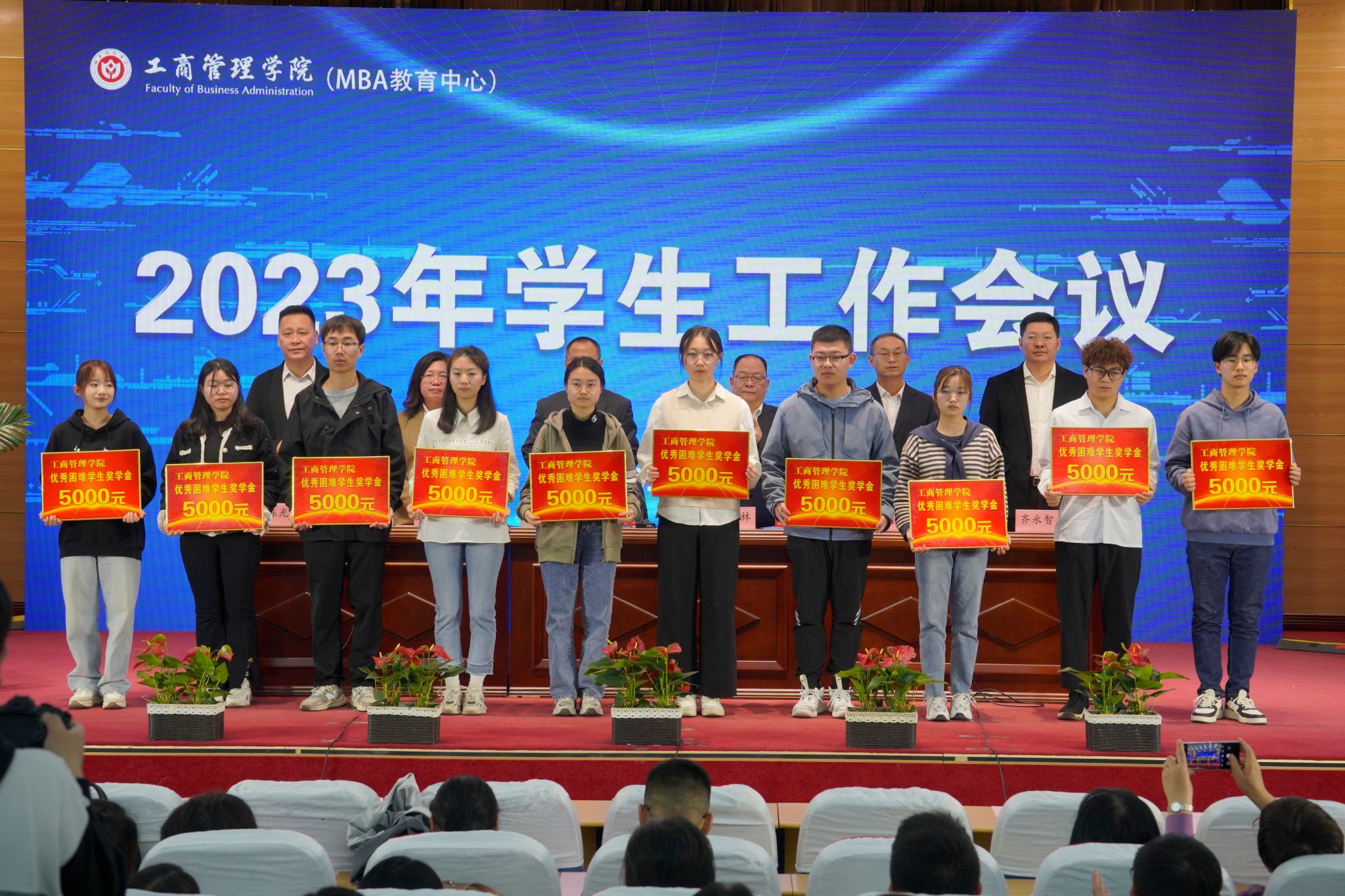 薛继东副院长宣读了《关于表彰2023年暑期社会实践报告优秀学生的决定》;齐永智副院长宣读了2023年度“八七成人企管一班校友爱心励学基金” 获得者名单,学院全体领导和嘉宾为获奖同学颁发了荣誉证书。