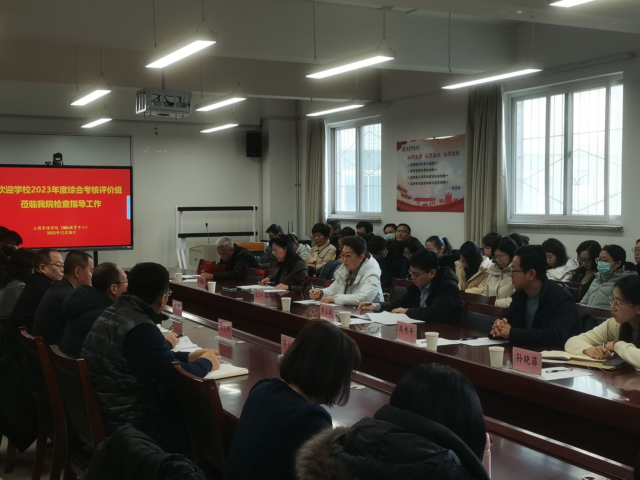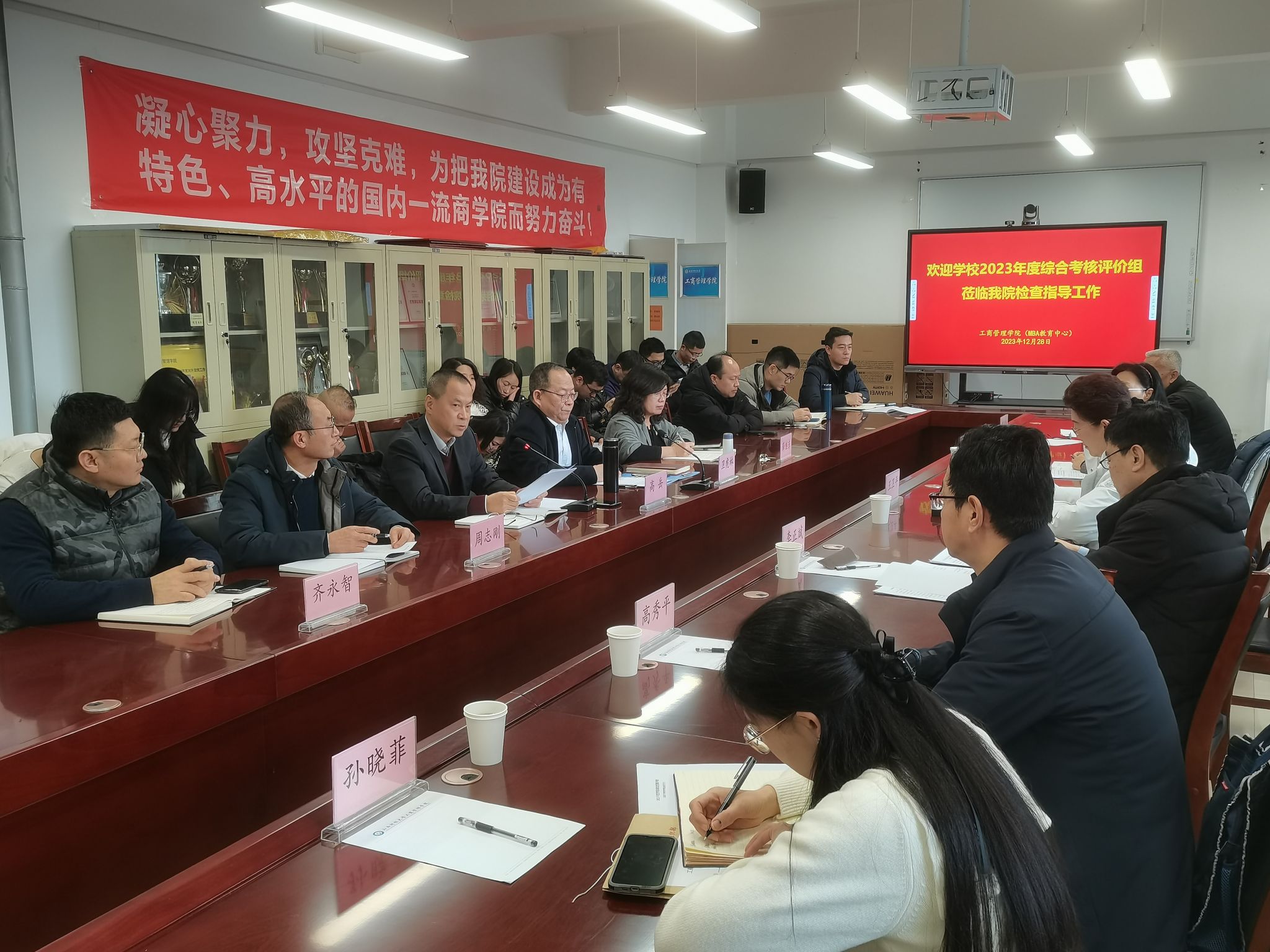 ,对学院2023年度工作进行综合考核评价,并进行民主测评。学院领导、全体教职工等共九十余人参加了会议。会议由王卫平副书记主持。