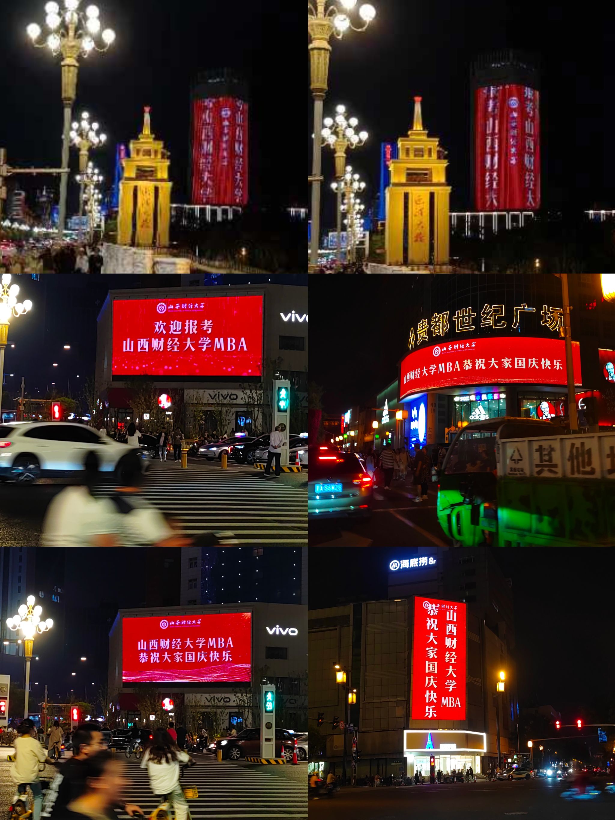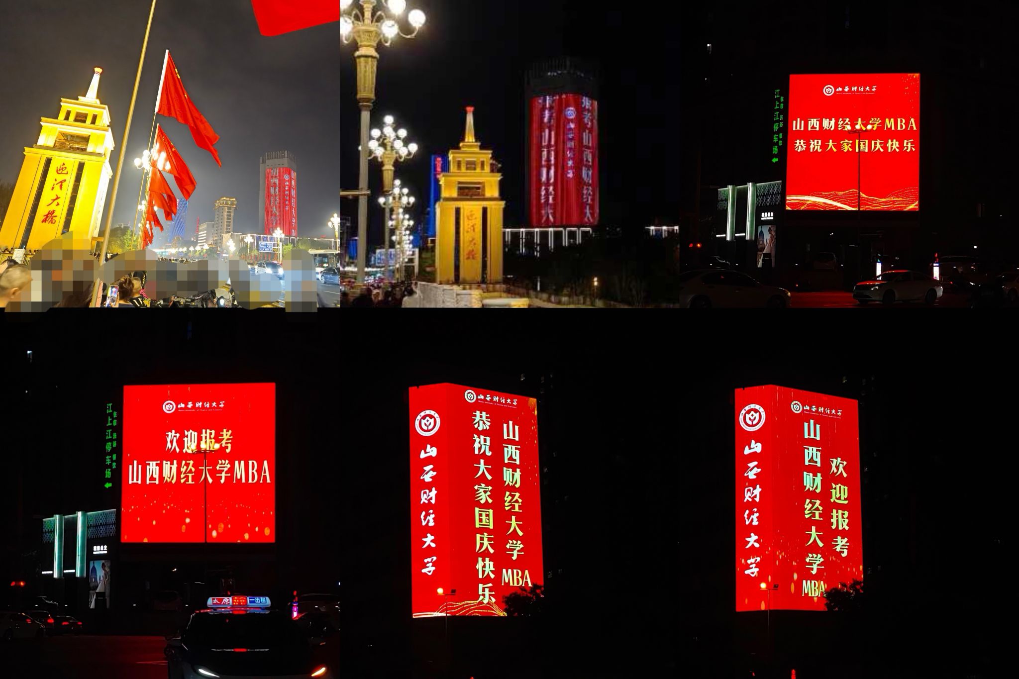 MBA”的祝福与问候滚动播出,在国庆即将到来之际,靓丽的“财大红”将再次闪耀龙城夜空。