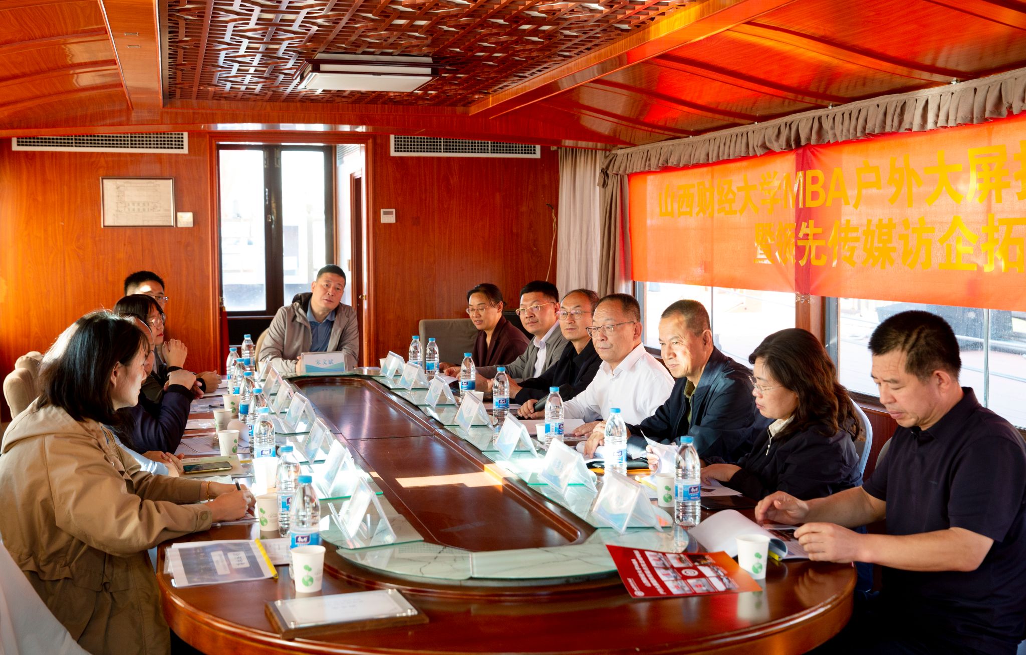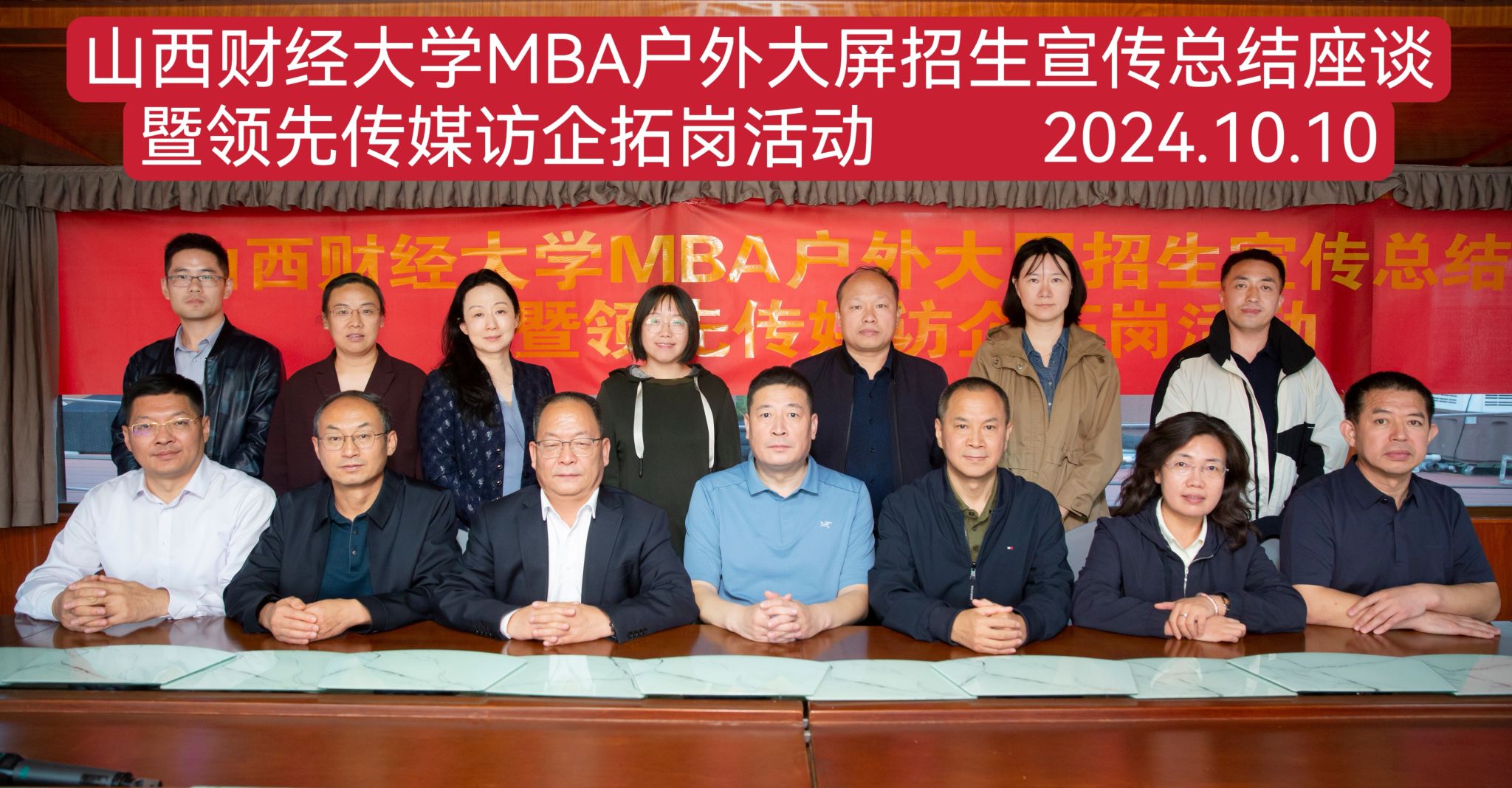 领导班子带队赴山西领先云天文化传媒有限责任公司(以下简称“领先传媒”),就2022-2024MBA户外大屏招生宣传进行总结座谈并举行访企拓岗活动。学院领导班子成员、办公室主任、院工会主席、分团委书记、各教研室负责人、MBA校友会会长等参加活动。会议由卫虎林院长主持。