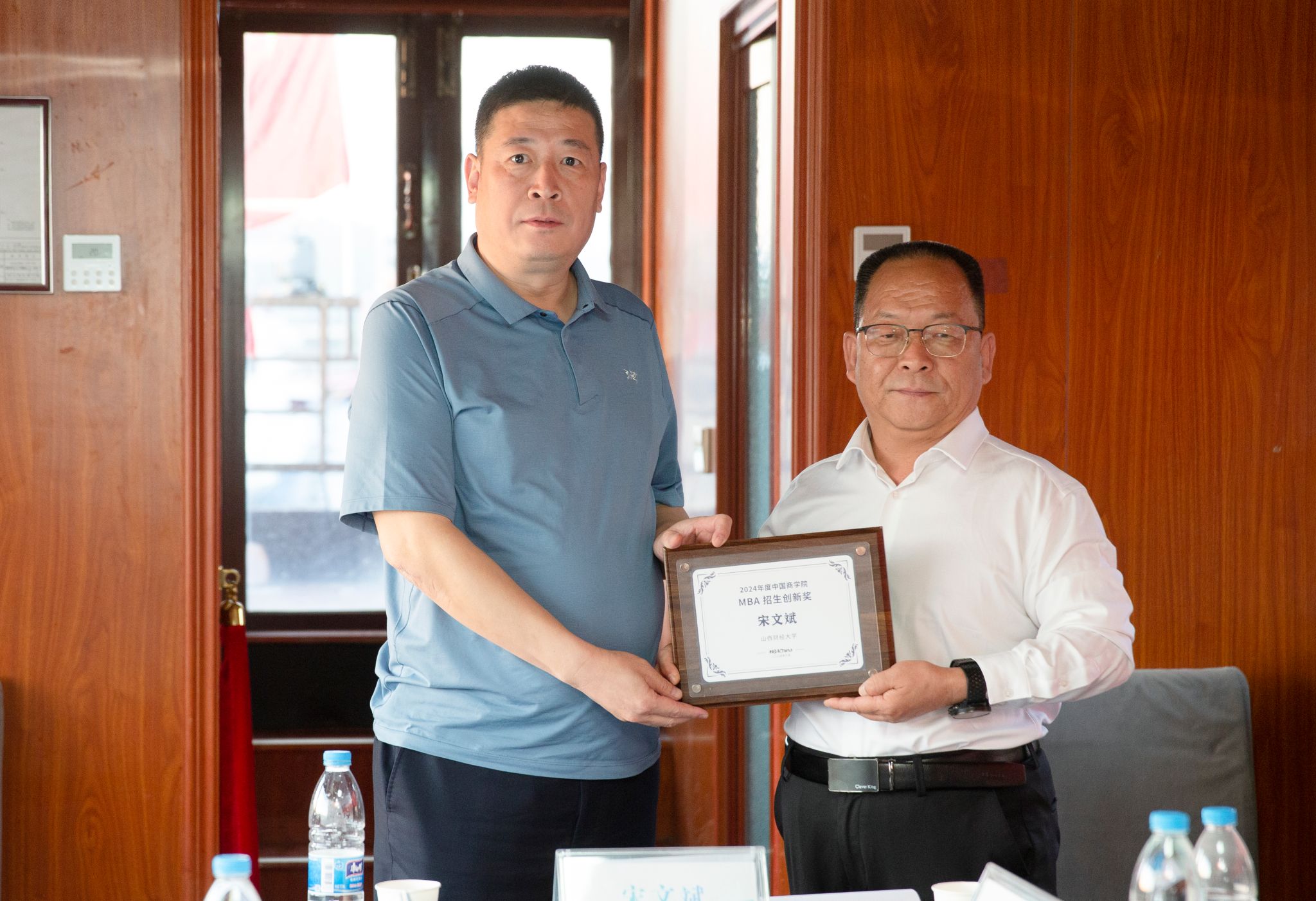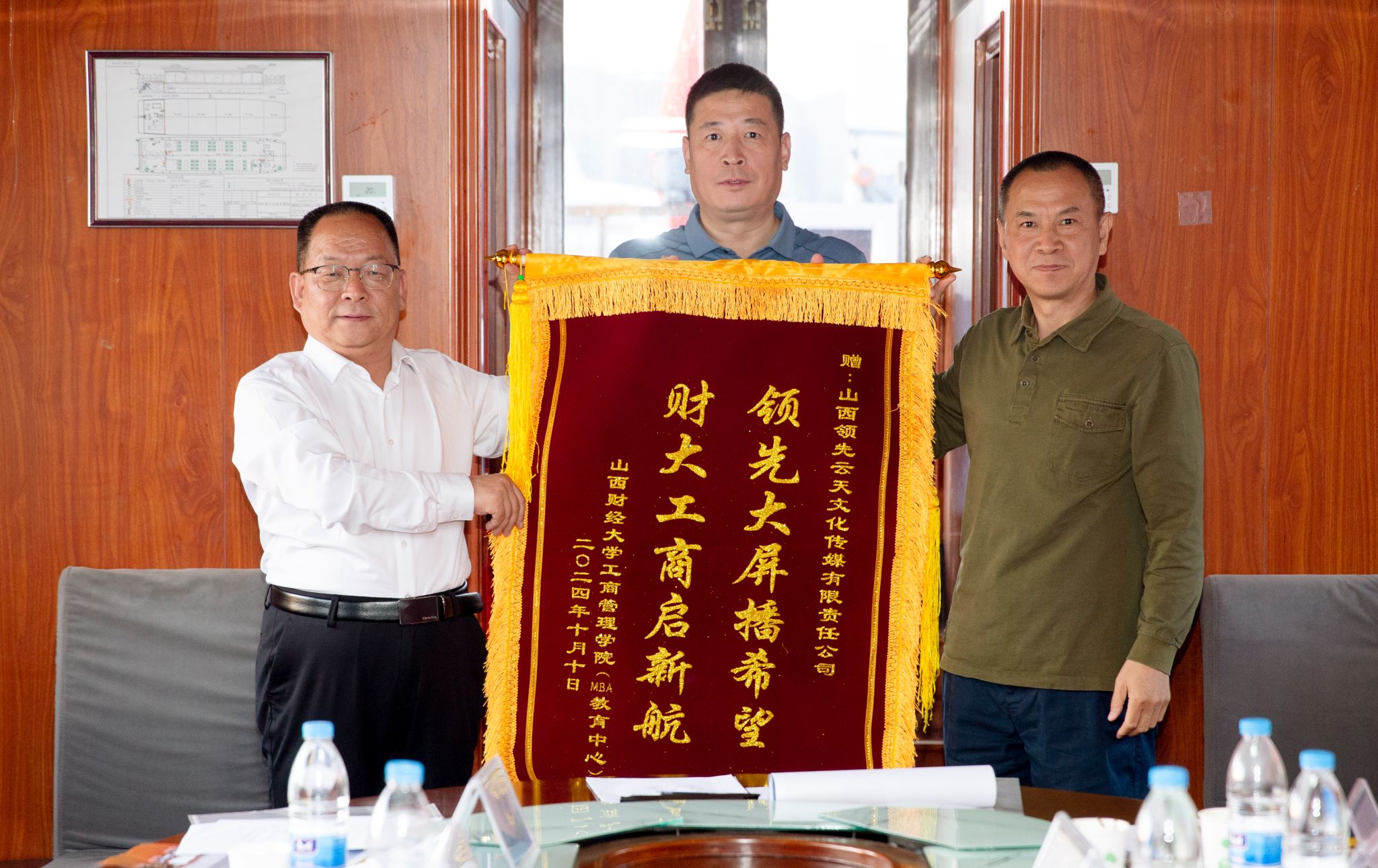 会上,卫虎林为领先传媒总经理宋文斌颁发了第十三届中国商学院招生经验分享暨培养创新论坛授予的“2024年度中国商学院MBA招生创新奖”;党委书记高岳与卫虎林院长共同为领先传媒赠送了“领先传媒播希望,财大工商启新航”的锦旗。(黑料不打烊