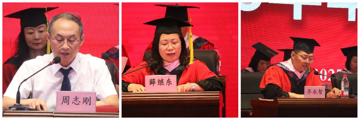 学院党委副书记周志刚宣读毕业生名单,副院长薛继东宣读优秀毕业生名单,副院长齐永智宣读校友联络员聘任决定。