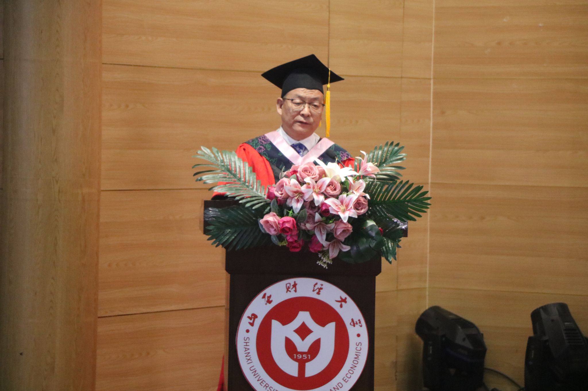典礼前,学院为2025届毕业生准备了丰富多彩的嘉年华活动。在庄严的国歌声中,毕业典礼正式开始。院长卫虎林向2025届全体毕业生致以热烈祝贺,并提出四点殷切期望:一是要以修德立信为基,恪守道德底线,以诚立身、以信兴业,夯实人生发展根基;二是以博学求真为径,践行终身学习理念,秉持"苟日新,日日新"的进取精神,在求知探索中不断突破自我;三是以创新创造为刃,勇立时代发展潮头,以无畏勇气直面挑战,开拓事业新局;四是以担当报国为魂,以青春之力勇担时代重任,将个人理想与家国命运紧密相连,书写奋斗人生的璀璨篇章。讲话最后,他寄语毕业生们始终坚守"诚实守信、开拓进取、和衷共济、务实经营、经世济民"的晋商精神,在未来征程中奋勇前行 。