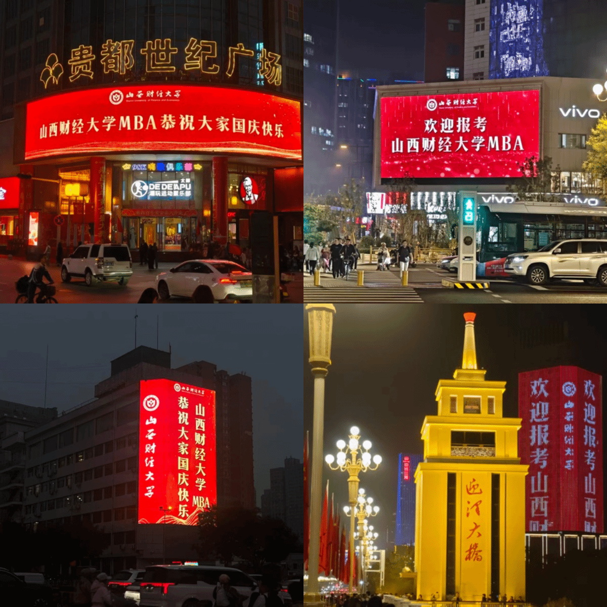 MBA”等温馨祝福与诚挚问候。在国庆佳节即将来临之际,鲜艳的“财大红”再次点亮龙城夜空,向社会各界送上诚挚的节日问候与祝福。