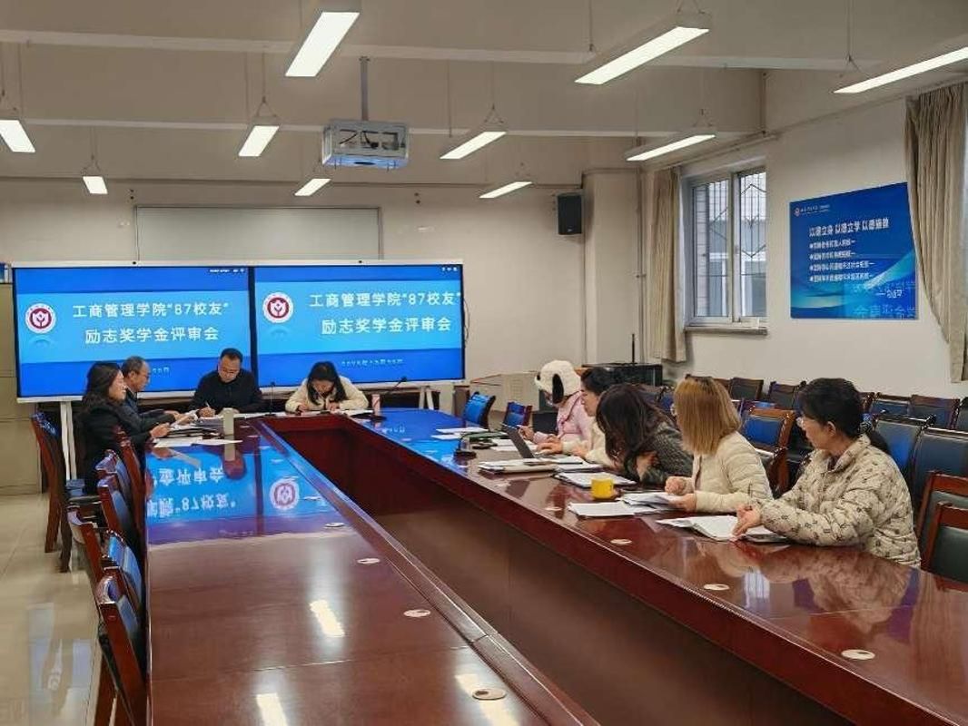 在会议室召开了2025年“87”校友励志奖学金评选会,基金评审委员会成员、各年级辅导员参加了本次会议。