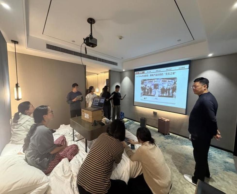 10月23日下午7点,团队抵达郑州入住。晚8点,赛事组委会下发案例《从听得见到听得懂:Orka智能助听器的破坏式创新之路》。团队即刻拆解案例核心问题,梳理行业态势,高效攻坚。高强度备赛尽显团队专业素养与协作力,指导教师解读破题指方向,成员分工明确,各司其职,确保方案落地。经过多轮案例分析与集体研讨,最终确定了“从听懂到相伴:Orka定义智能听觉穿戴行业的战略升维之路”的文案题目,从战略升维角度切入,提出为企业重新定义新品类,通过产品极致化战略、平台服务化战略和生态共同体战略协同发力,实现Orka在新的智能听觉穿戴设备品类中的升维跃迁。