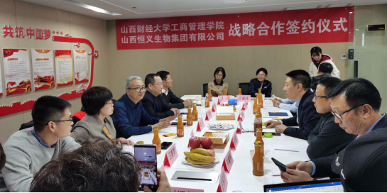领导、部分MBA教师与学生代表等十余人赴山西恒义生物集团进行调研,就院企合作事宜举行研讨会并签订战略合作协议。山西恒义生物集团董事长许张兵等公司相关人员参加会议。会议由学院党委书记郜军主持。