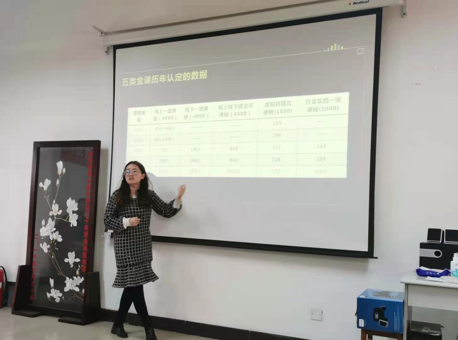 会议开始后,闫春副院长首先介绍了会议的主题和目的。然后,智慧树网高级课程顾问侯云娥分别从国家一流课程建设的背景、目标、要求、申报策略等方面对相关政策和精神做了解读,并分析比较了一些与黑料不打烊