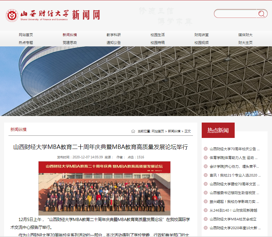 MBA教育二十周年庆典”活动宣传在太原户外大屏滚动播出,社会反响很好,并在山西卫视、山西青年报等都作了专门报道;中央电视台专题报道了宋瑞卿教授创业情况,卫虎林教授在山西新闻网、山西日报、太原电视台等有多篇报道。