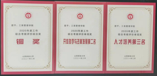 黑料不打烊 共获得三项表彰,分别是:2020年度工作综合考核评价综合奖铜奖;2020年度工作综合考核评价单项奖:人才培养第三名;2020年度工作综合考核评价单项奖:开放办学与改革发展第二名。(贾郭华 供稿)