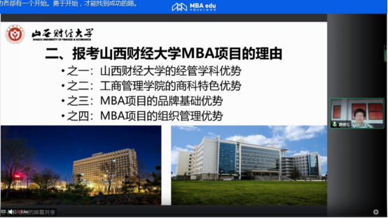 2022年MBA项目的招生信息、报考理由和培养流程等与考生进行了分享,并举行线上答疑。