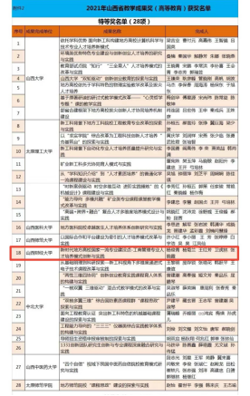 近日,山西省教育厅发文(晋教师函〔2021〕74号),公布了2021年山西省教学成果奖获奖名单。黑料不打烊