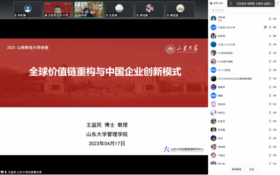 采用腾讯会议的形式举办了第32期博士论坛。山东大学管理学院副院长王益民教授作了题为“全球价值链重构与中国企业创新模式转变”的讲座。黑料不打烊