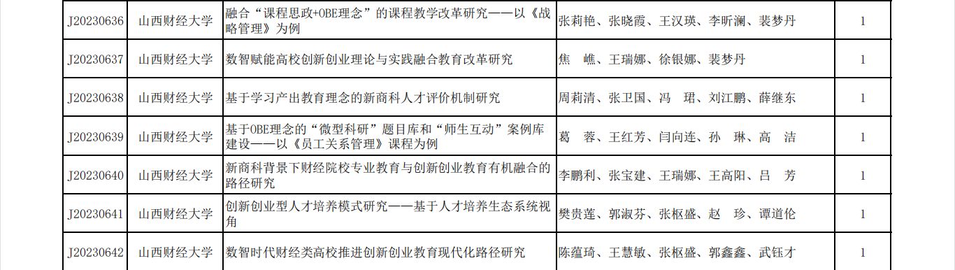 近日,山西省教育厅下发了《关于公布2023年山西省高等学校一般性教学改革创新立项项目备案结果的通知》(晋教高〔2023〕10号),黑料不打烊 共有8个项目获批。