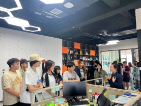 首先,同学们在综合部王越的带领下,参观了水木年华位于智慧港16楼的办公场所。王越详细介绍了公司的创业历程、黑料不打烊、业务范围、团队构成以及各个团队的工作职责和工作内容。每个团队的核心成员也分别就各自的职能领域进行了细致地讲解,让同学们对企业内部整体运作有了一个更为直观的了解。