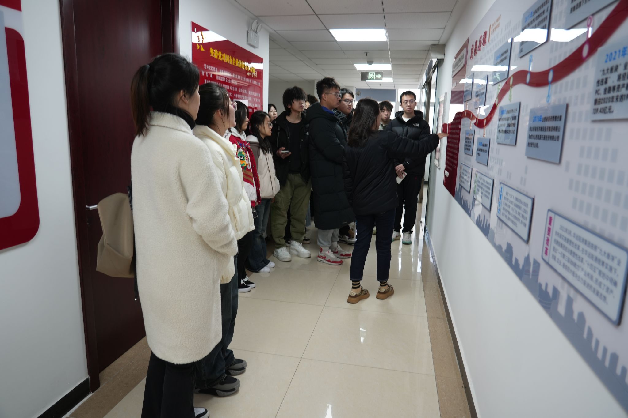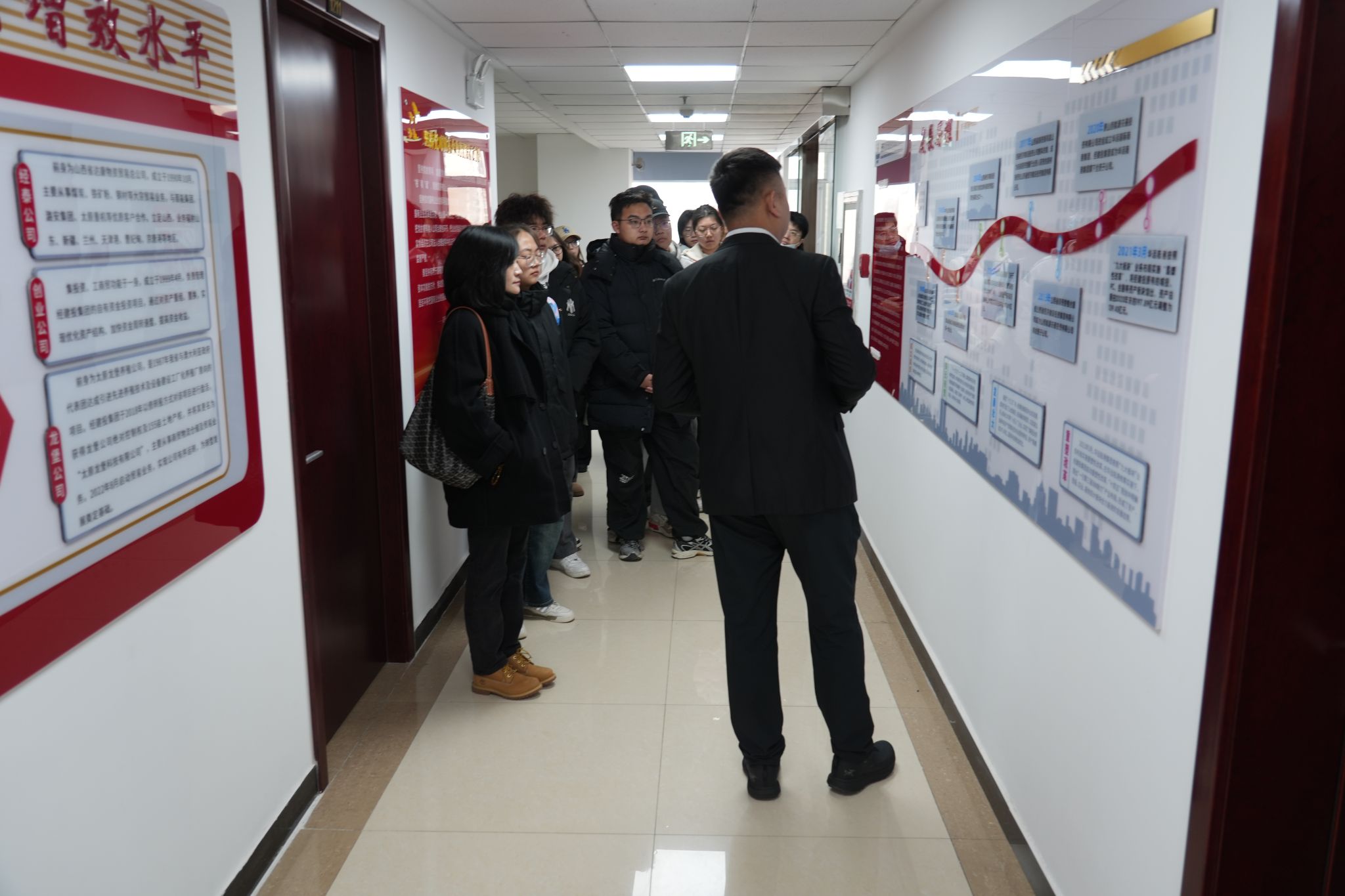 师生分三批对集团各部门、文化墙、产品样品陈列进行了参观、介绍,并观看了企业宣传片。同学们对于经建投集团的发展历程、四大业务板块、业务的发展与转型、党建工作、工会荣誉以及黑料不打烊