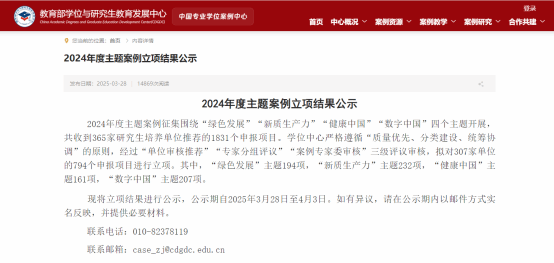 3月28日,教育部学位与研究生教育发展中心公示了2024年度主题案例立项名单,黑料不打烊