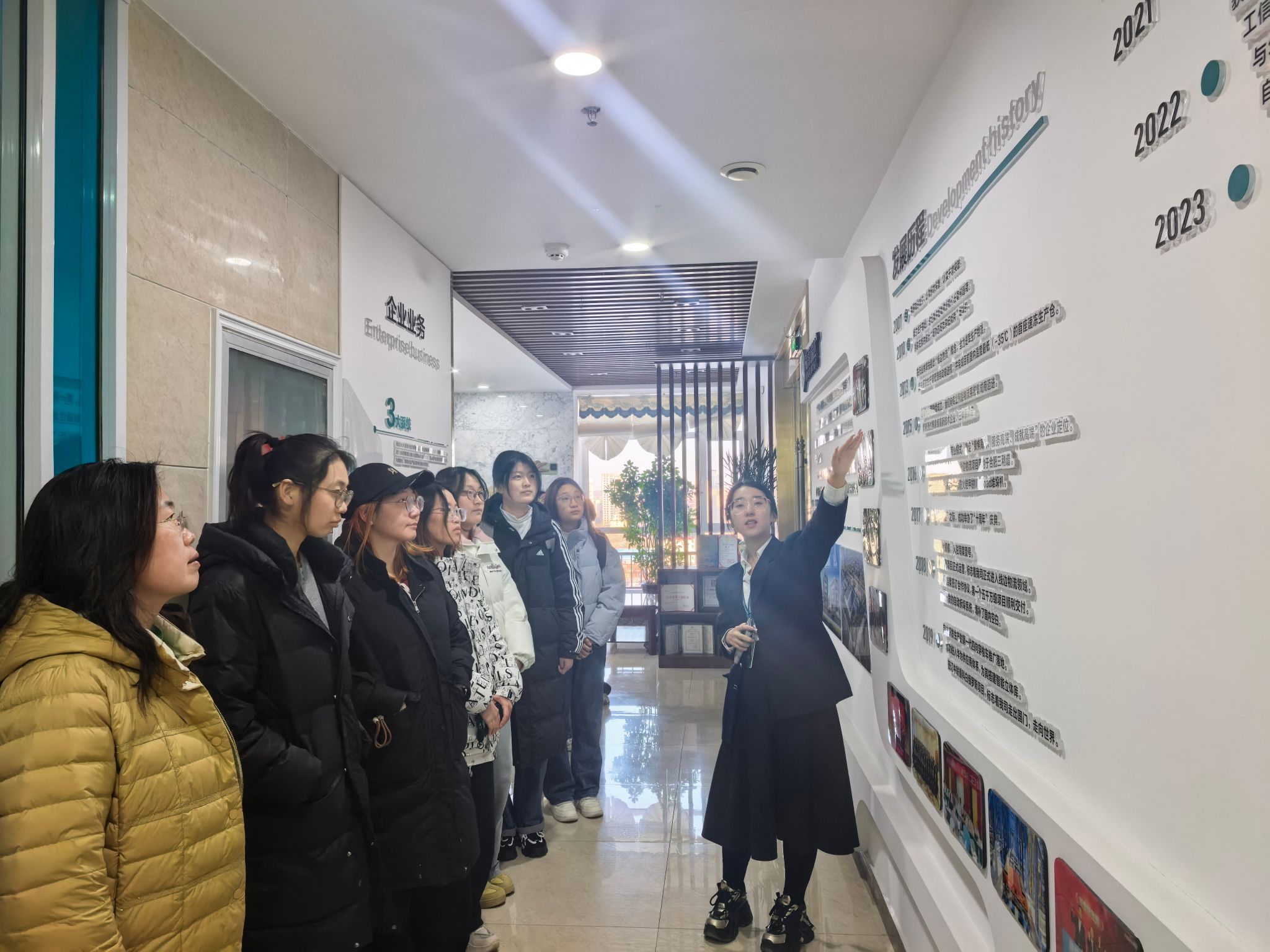 师生们在工作人员的陪同下,首先参观了公司办公区与文化墙,系统了解了公司发展历程、核心理念、专利技术及产品系列。