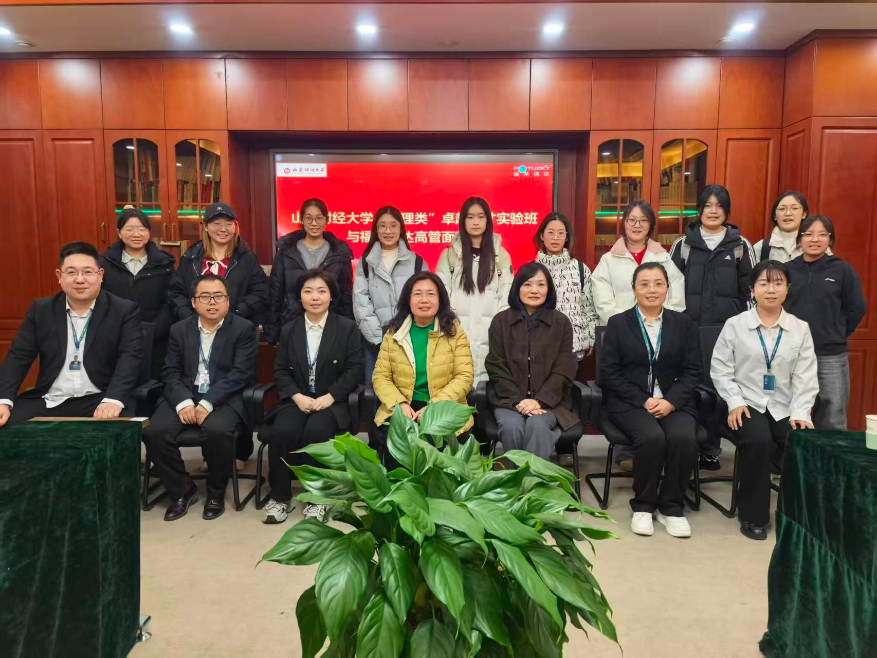 薛继东副院长与张莉艳副教授带领“管理类”卓越人才培养实验班师生一行10余人,赴太原福莱瑞达物流设备科技有限公司开展交流座谈。财经中心副总经理杨珊、福莱大学副校长常红霞、技术总监张永强与刘艳伟、人力行政中心主任张志星、营销中心部长孙慧峰等高管参加了座谈。