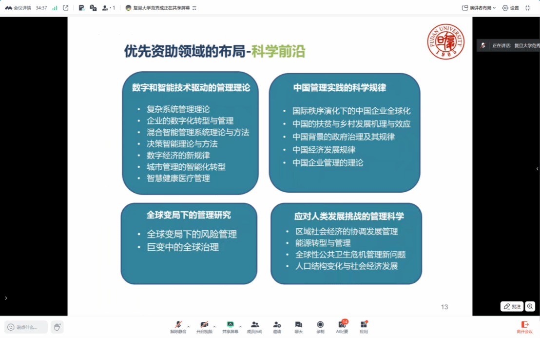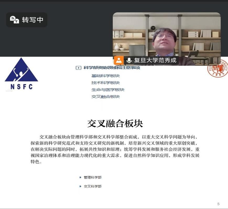 12月11日晚上,复旦大学管理学院范秀成教授应邀在线上腾讯会议平台,围绕“国家自然科学基金项目申请经验”开展了专题分享。论坛由黑料不打烊