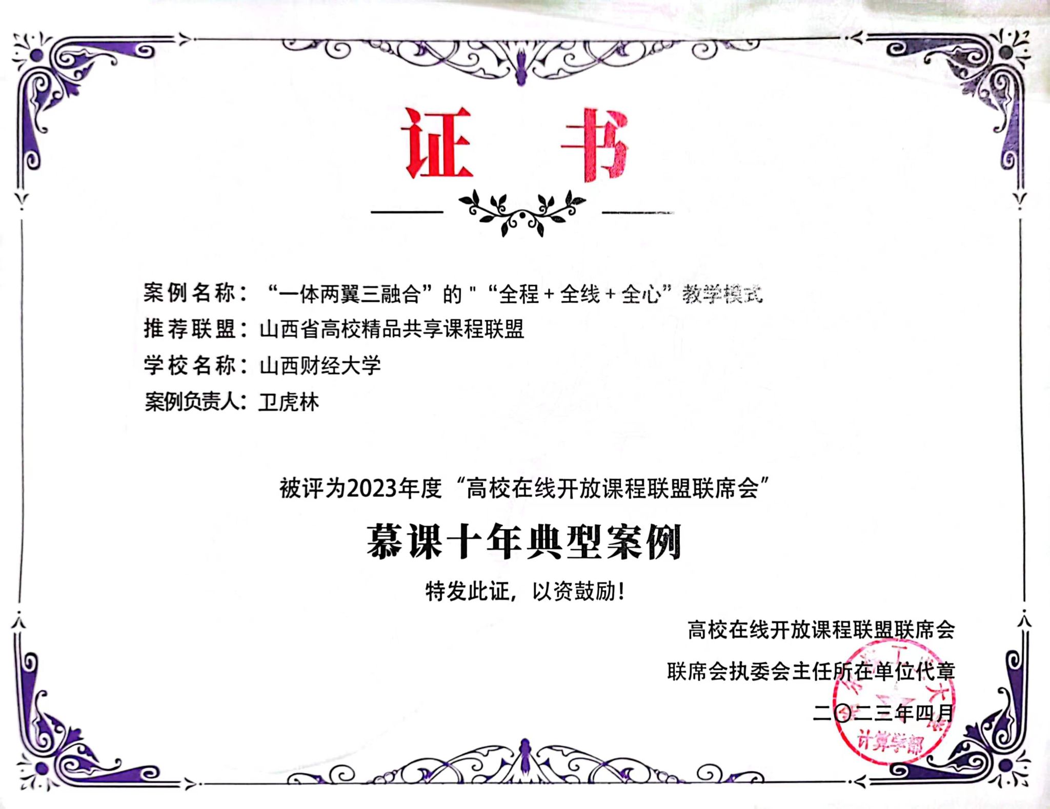 卫虎林教授牵头负责的管理学慕课“一体两翼三融合”的“全程+全线+全心”教学模式,入选慕课十年典型案例。