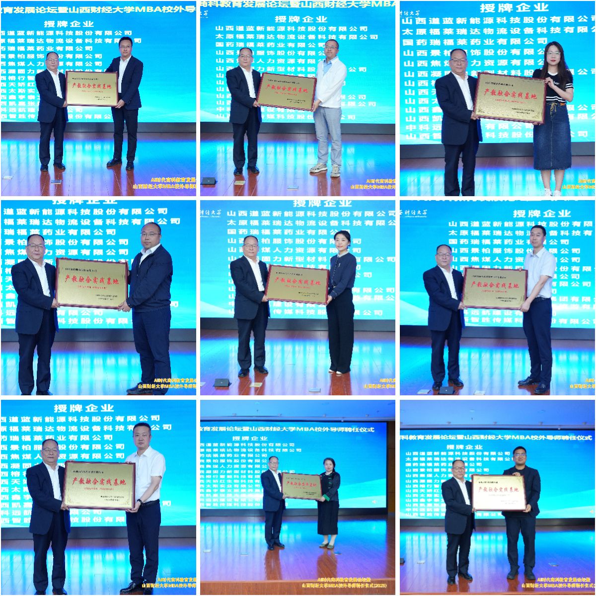 卫虎林院长为13家公司授予“产教融合实践基地”牌匾