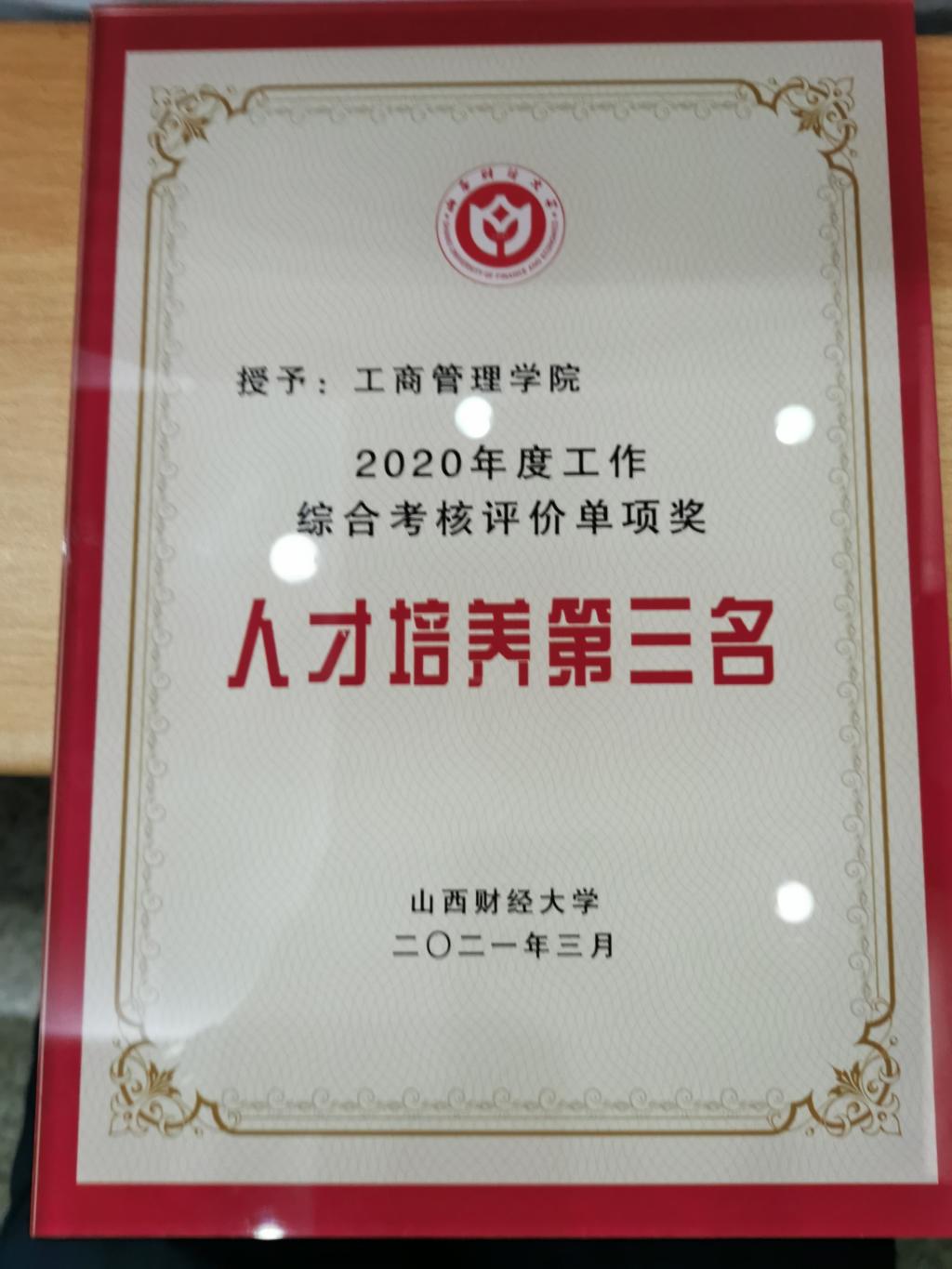 2021年6月30日学院2020年度综合考核评价获得学校表彰