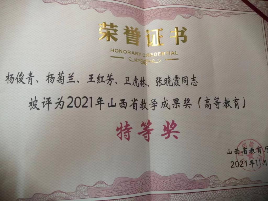 杨俊青教授申报的“新时代地方高校国家一流专业建设点-工商管理专业人才培养模式创新与实践”项目荣获2021年山西省教学成果奖(高等教育)特等奖。