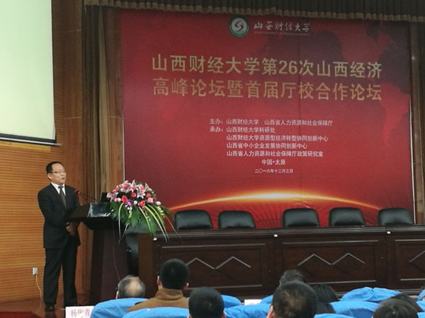 和山西省人力资源社会保障厅共同主办的第26次山西经济高峰论坛暨首届厅校合作论坛在坞城校区国际学术交流中心报告厅隆重举行。来自国内高等院校及研究所的专家学者、我省政府与企事业单位代表、学校各学院及研究中心的师生代表400余人齐聚一堂,共同享受了一场经济学大餐。论坛由副校长杨俊青主持。