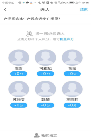 2、视频学习掌握知识点。八点到九点五十分,学生带着问题和知识点观看营销管理导论部分视频,完成第一、第二单元测试内容。我提醒大家观看视频不要拖快,已设功能,否则没有成绩。十点十分到十点五十分视频结束后根据本章节的知识点发起三个抢答问题和两个选人问题,选人设置的问题是关于视频内容的小讨论题,点到的同学提出自己的思路和见解。由于在通知里已经详细告知使用方法,大部分学生对基本知识点的把握比较扎实。