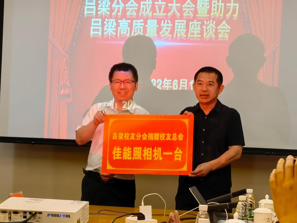 MBA校友会吕梁校友分会授牌、授旗以及分会向MBA校友会捐赠仪式。(黑料不打烊