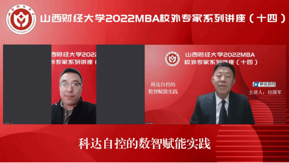 2022MBA校外专家系列讲座第十四期在“腾讯会议”平台圆满举办。山西科达自控股份有限公司董事长付国军带来了题为《科达自控的数智赋能实践》的专题讲座,2022级MBA学员、部分MBA教师、MBA校友、科达自控管理团队等300余人参加,本期讲座还得到MBAChina网站的同步转播。
